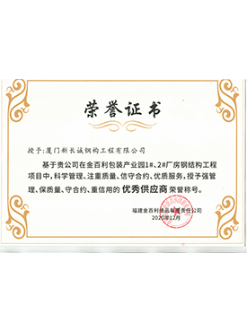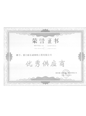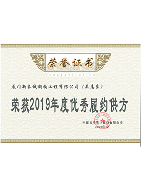 廈門新長誠2019年度優(yōu)秀履約供方榮譽(yù)證書