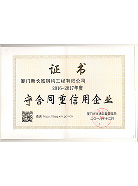 廈門新長誠鋼構(gòu)工程有限公司守合同重信用企業(yè)2016-2017年度