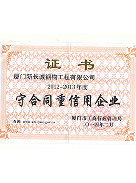 2012-2013年度守合同重信用企業(yè)證書
