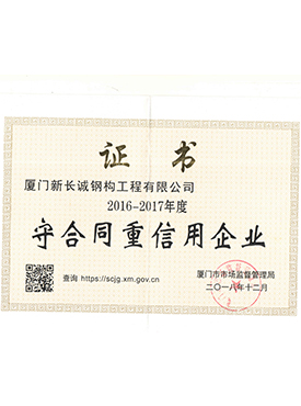 2016-2017年度守合同重信用企業(yè)證書
