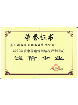 2020年度中國建筑鋼結(jié)構(gòu)行業(yè)(5A)誠信企業(yè)-榮譽證書