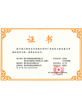 保灃1號廠房建設工程廈門市結(jié)構(gòu)優(yōu)質(zhì)工程證書